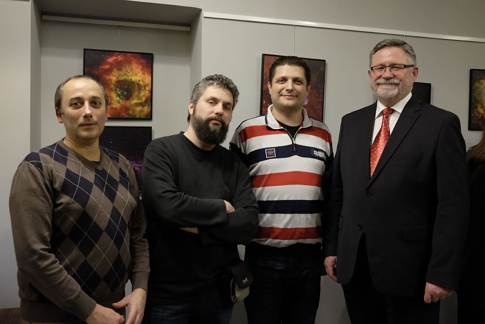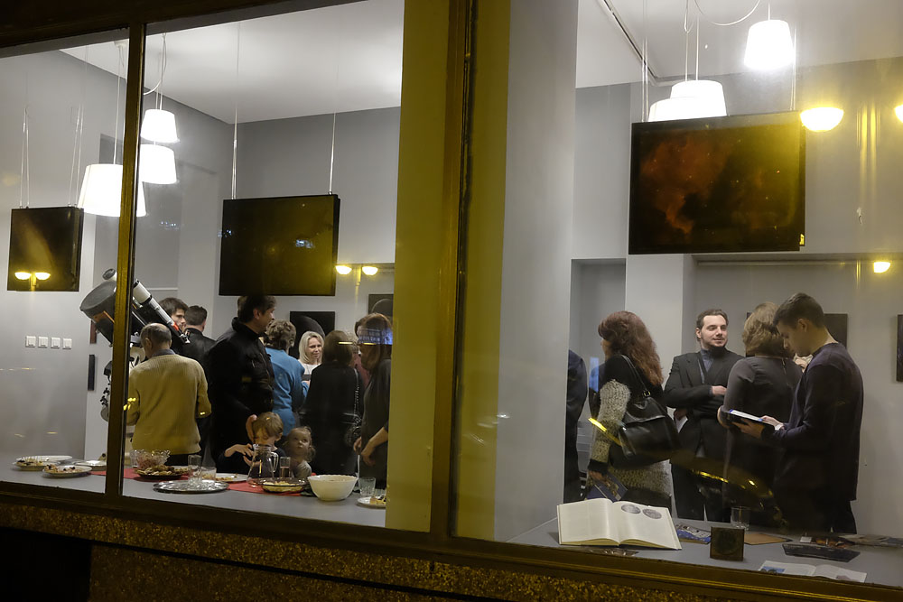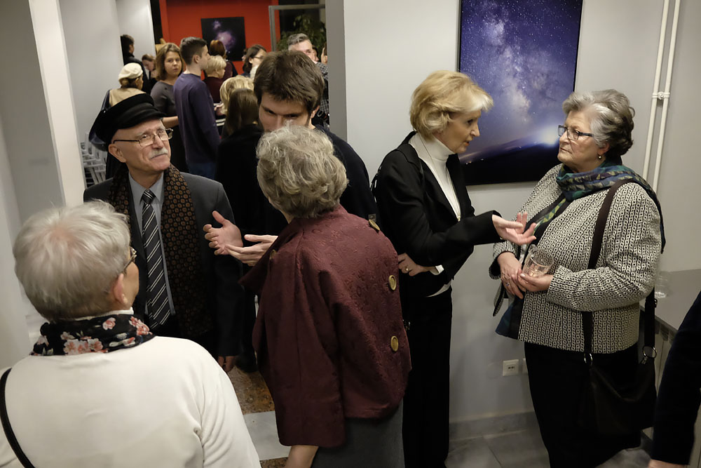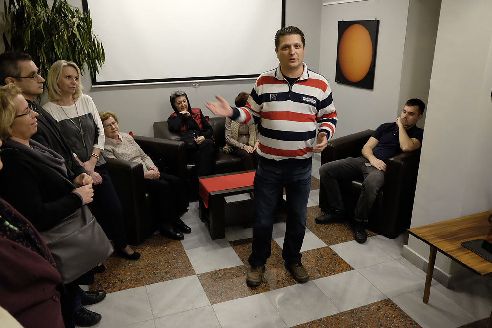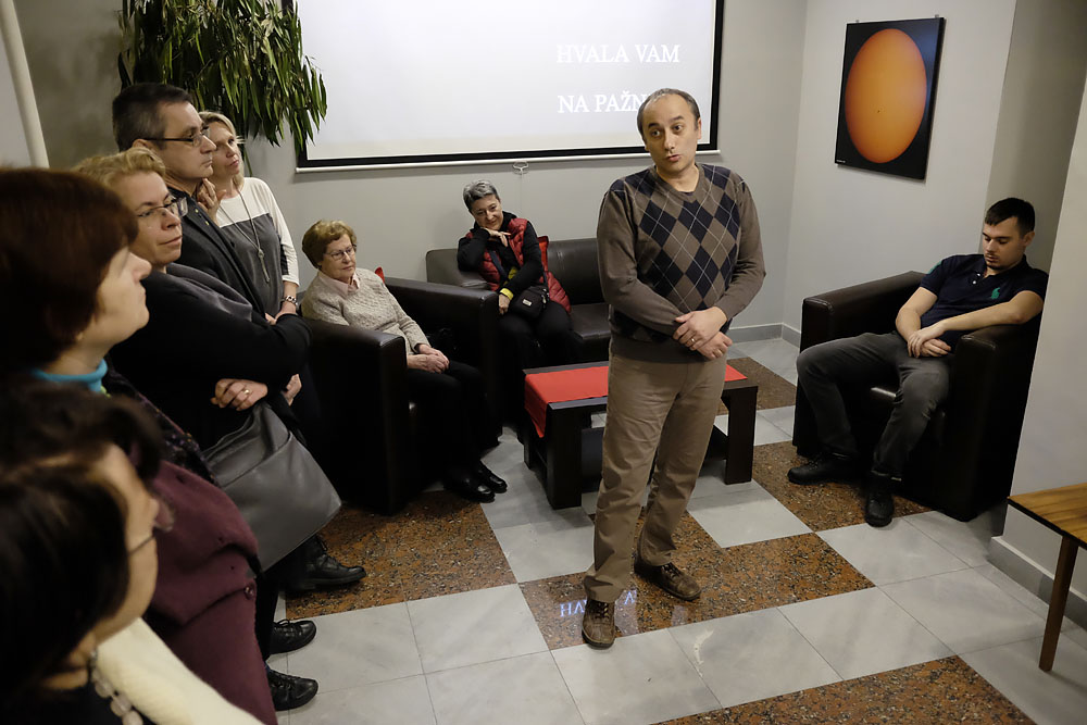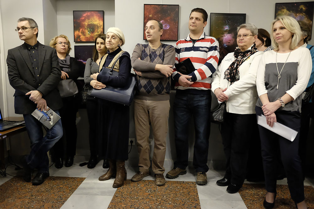 Otvorenje je bilo dobro posjećeno, obogaćeno teleskopom kojeg je postavio Alan Jadanić. Uz kratku prezentaciju udruge Kopernik, prisutnima su se kratko obratili članovi Zvjezdarnice i AADZ, a naravno i predsjednik udruge. Druženje se nastavilo uz kolačiće, keksiće i kuhano vino. Nadamo se da će biti još prilike za ovakve događaje, što nam potvrđuje i prisutstvo ambasadora Poljske koji je s zanimanjem pogledao izložbu.