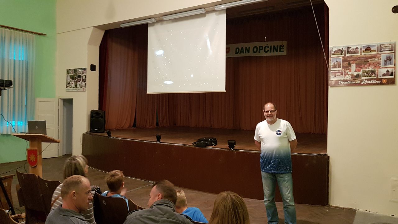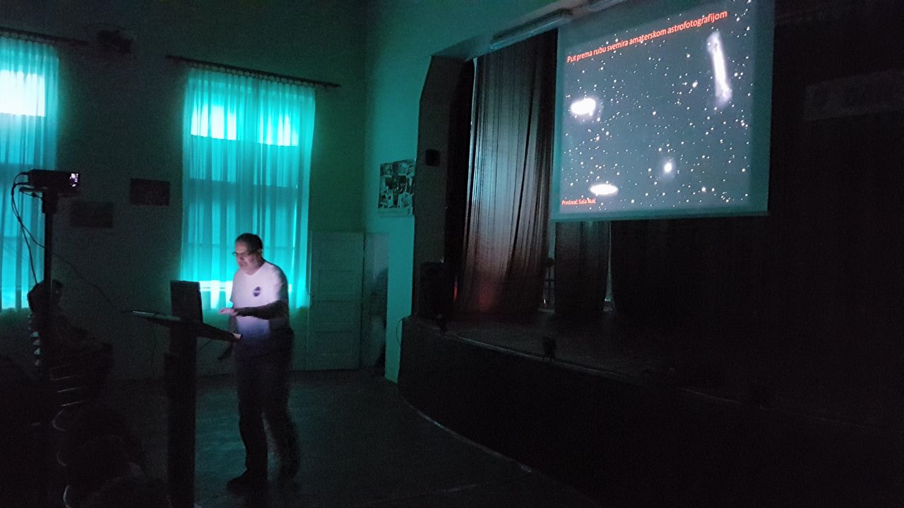 Naš član Saša Nuić održao je inspirativno predavanje na temu „Put prema rubu svemira amaterskom astrofotografijom“. Put od Sunčevog sustava do samog ruba svemira dočarao je svojim astrofotografijama planeta, maglica i galaksija uz mnoštvo zanimljivih priča koje su oduševile sve prisutne. Osim predavanja u programu je bilo predviđeno i javno promatranje neba teleskopima, ali je zbog naoblake nažalost odgođeno. Druženje s organizatorima nastavljeno je uz čašicu razgovora u obližnjem kafiću uz dogovor za daljnju suradnju i druženje. Veselimo se!
