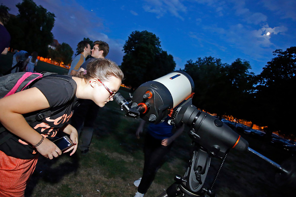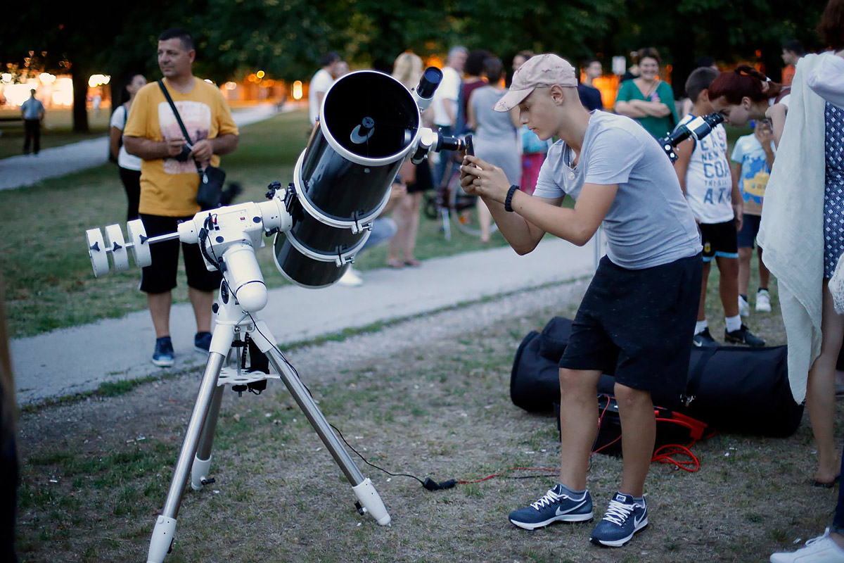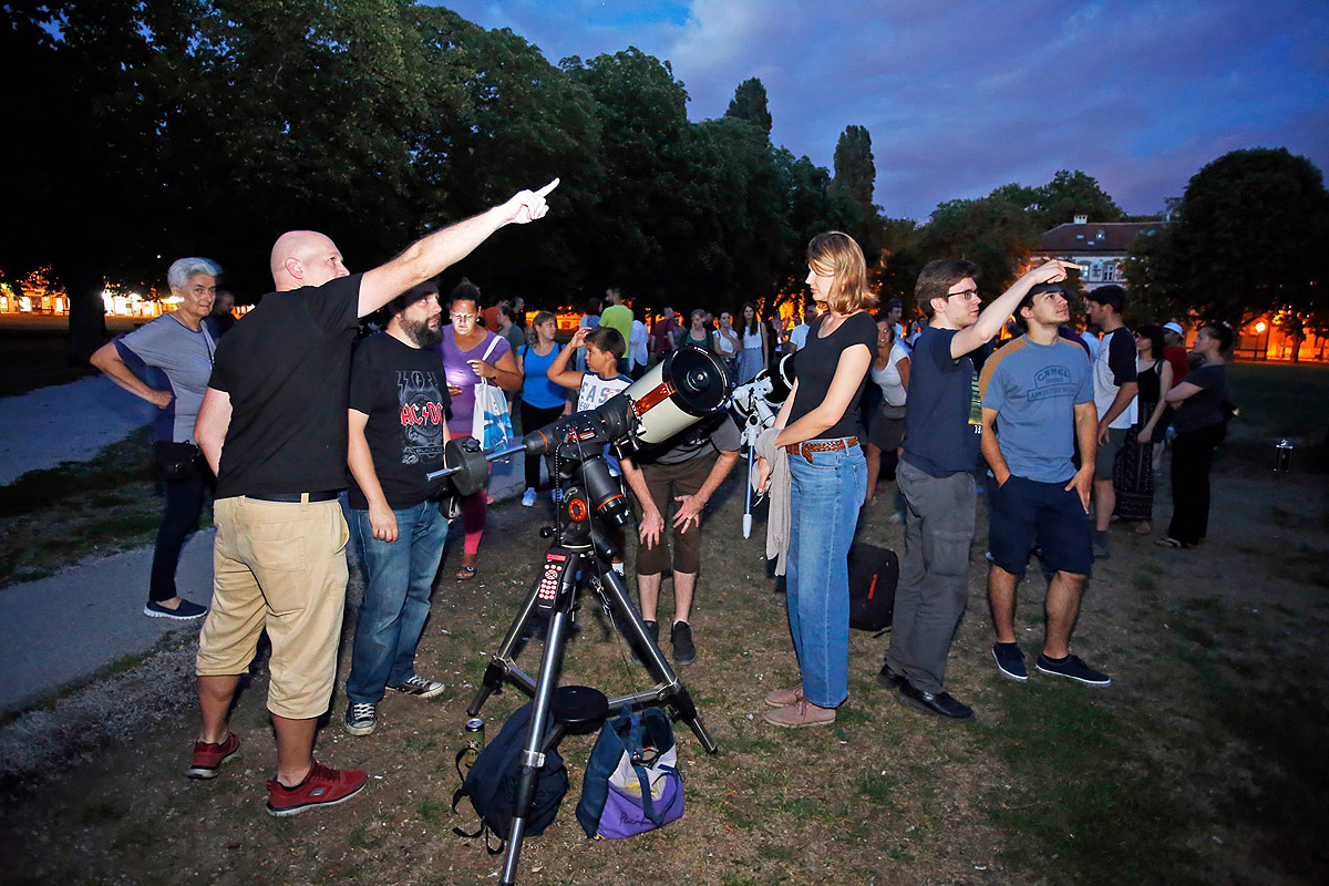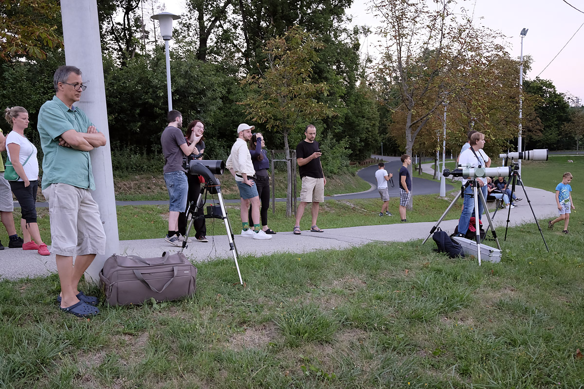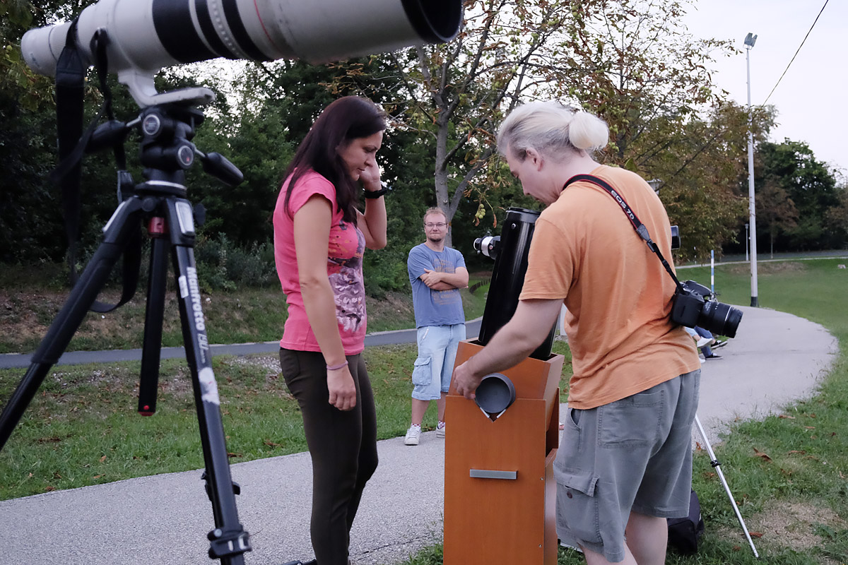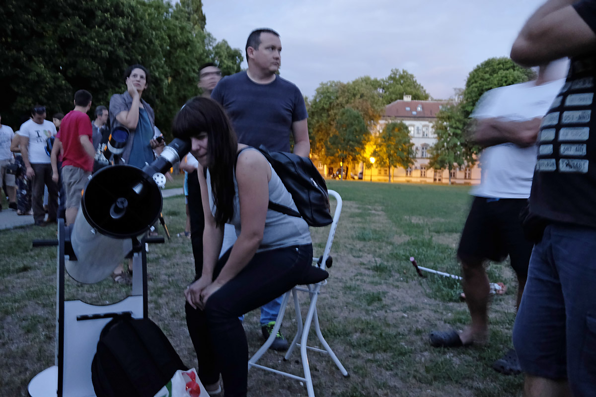 U zadnjih desetak dana održali smo dva javna promatranja za građanstvo. U nedjelju, 30.7., na Trgu Franje Tuđmana u Zagrebu imali smo promatranje Saturna i Mjeseca u prvoj četvrti. Kao i prošli puta na promatranju Jupitera (4.6.), skupilo se jako puno posjetitelja. Ovaj puta imali smo čak sedam teleskopa! U početku su malo smetali oblaci, ali kasnije se razvedrilo pa smo gledali i neke sjajnije objekte dubokog neba – kuglaste skupove M13 i M92, planetarne maglice M57 i M27, višestruke zvjezdane sustave Abireo i Double Double, i još mnogo toga.